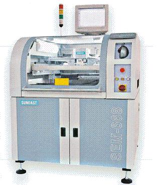 6. 多功能的板處理裝置可自動定位夾持各種尺寸和厚度的PCB板,帶有可移動的磁性頂針和真空吸附裝置,有效地克服板的變形,確保印刷過程均勻。