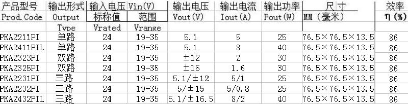 國產(chǎn)DC-DC電源模塊PKA系列產(chǎn)品詳情