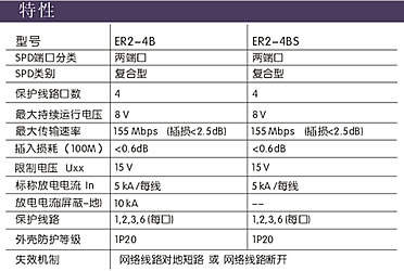 ER2-4B系列采用世界最新高速浪涌抑制器件,最大數據傳輸率可達155Mbps。安裝便捷,無需維護,放電電流可高達5000A ,反應速度皮秒級 ,完全滿足于各類網絡設備及網絡數據傳輸防雷保護的要求。