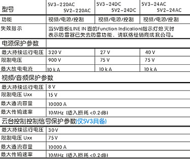 SV系列交/直流供電監控攝像機電涌保護器為一體化多功能防雷器。可以分別對攝像機的電源、視頻/音頻、云臺控制線路實施浪涌保護,最高通流容量可達10000A。而限制電壓則可低至15 V,反應速度為皮秒級,可充分保護采用最新技術的監控設備。