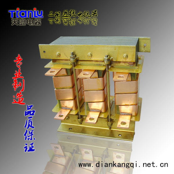 用于電網(wǎng)進(jìn)線中,通過的是交流電流, 作用是限制變頻器換相進(jìn)電網(wǎng)兩側(cè)的電壓降, 抑制諧波和晶閘管的電流上升率di/dt和電壓上升率du.dt,以及并聯(lián)變流器組的解耦。它能夠限制電網(wǎng)電壓的跳躍和電網(wǎng)系統(tǒng)操作時所產(chǎn)生的沖擊電流,有保護(hù)終端電器設(shè)備,及抑制無線電干擾。三相進(jìn)線電抗器可用于直流調(diào)速器,變頻器、軟起動等配套使用。