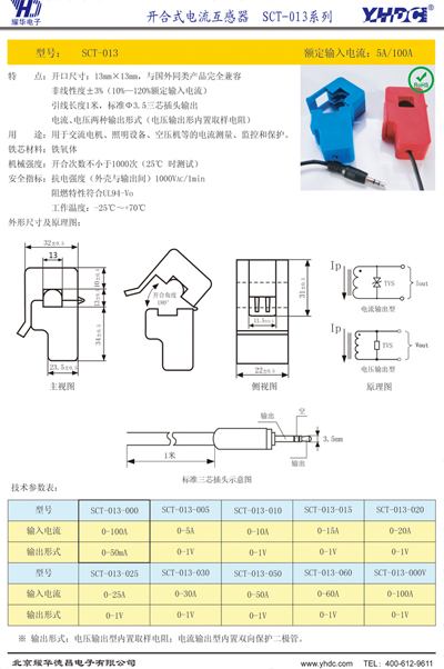 特點:開口尺寸:13*13,與國外同類產(chǎn)品兼容,非線性度3%(10%-120%額定輸入電流)引線長度一米,標準3.5三芯插頭輸出,電流電壓兩種輸出形式(電壓輸出形內(nèi)置取樣電阻)